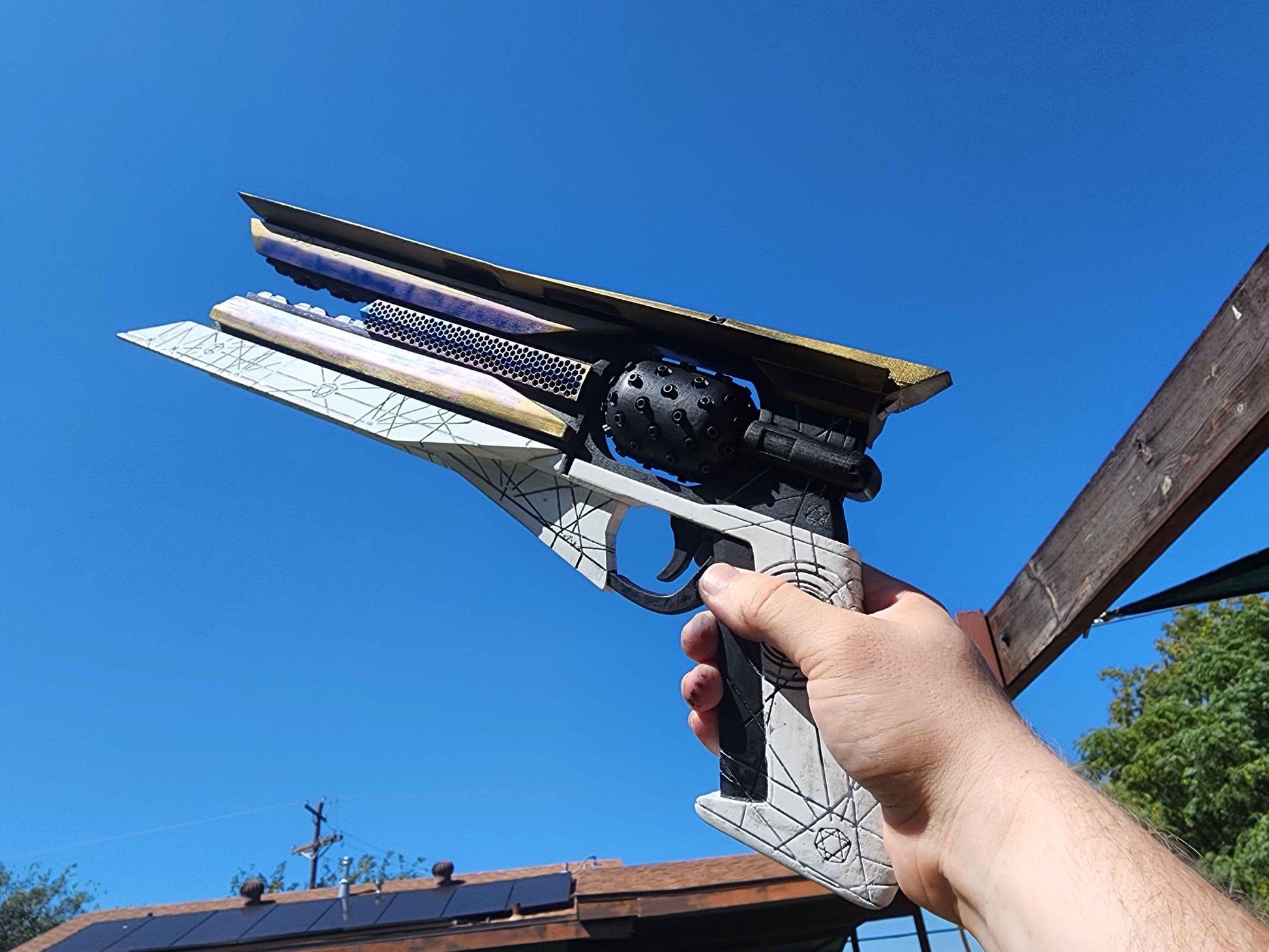 A recreation of the Sunshot Handcannon as portrayed in Destiny 2! The images are my own attempt at the paintjob and recreation of the item as modeled by the digital creator Oddworks. The power core 'magazine/cylinder' is removable, and the trigger is functional.