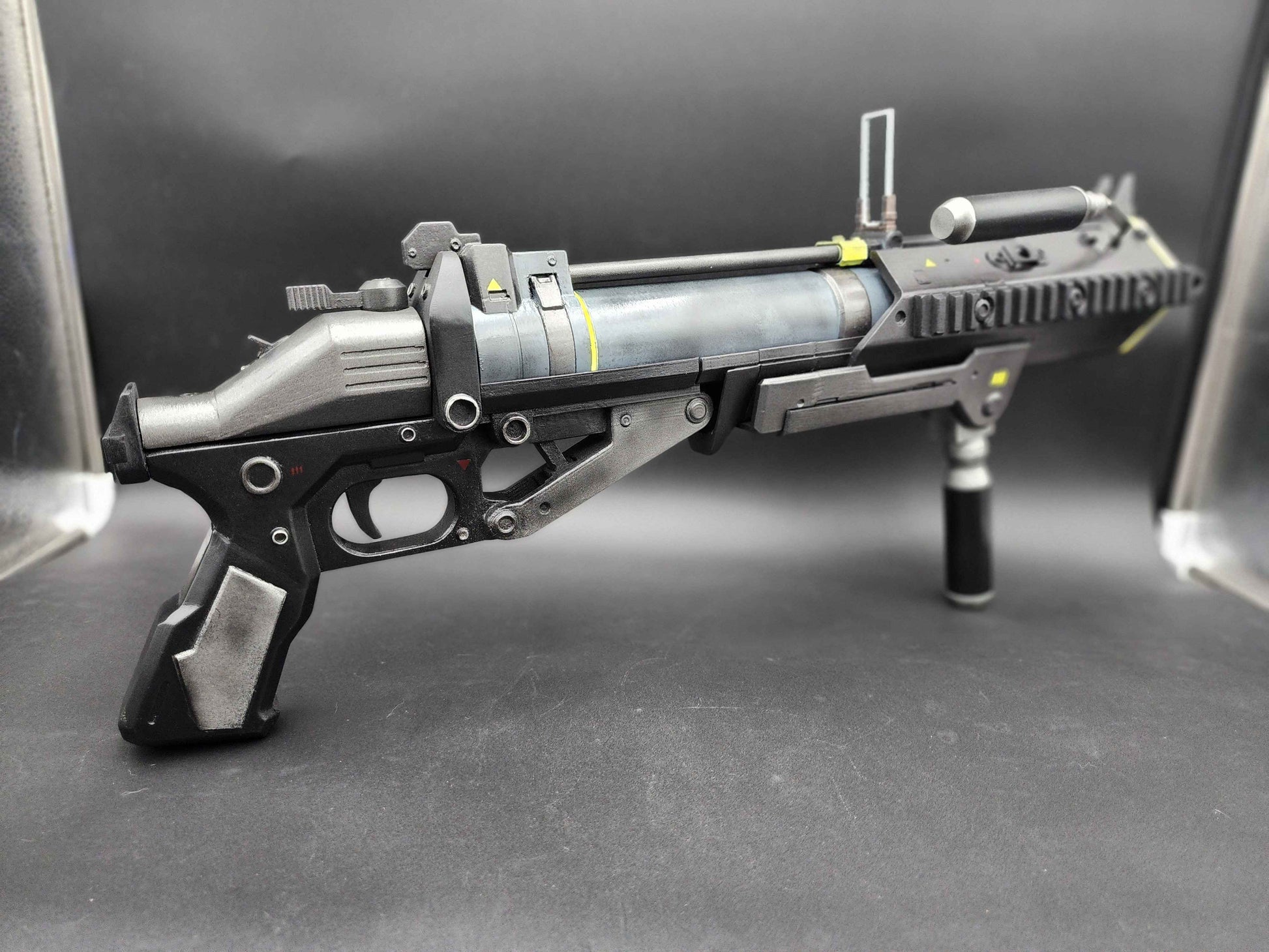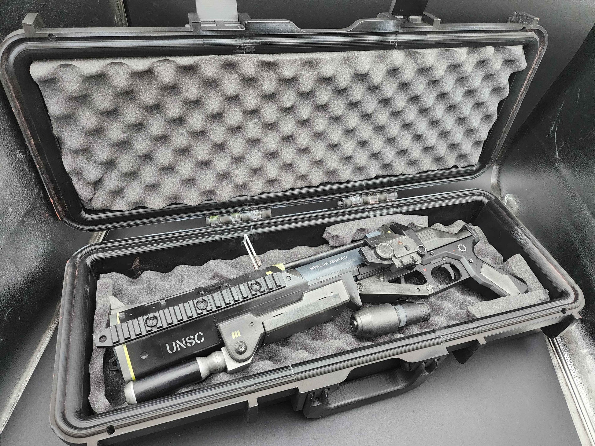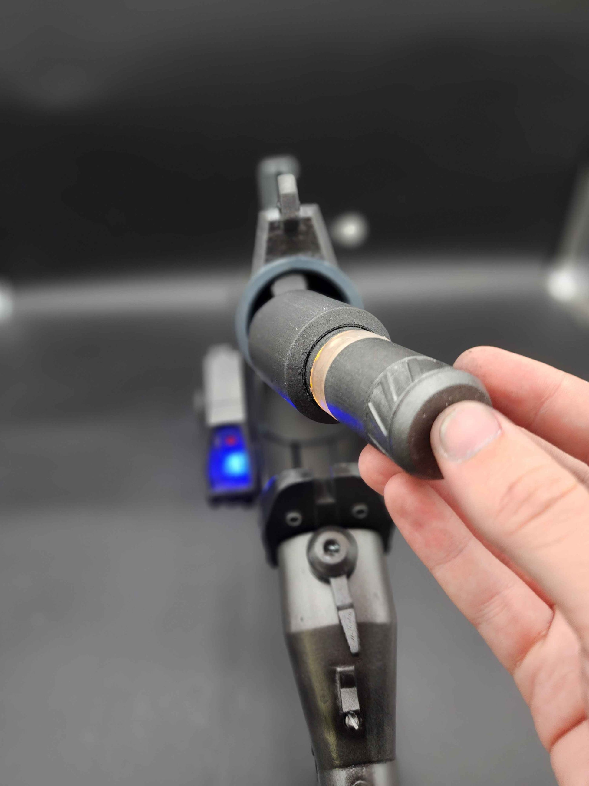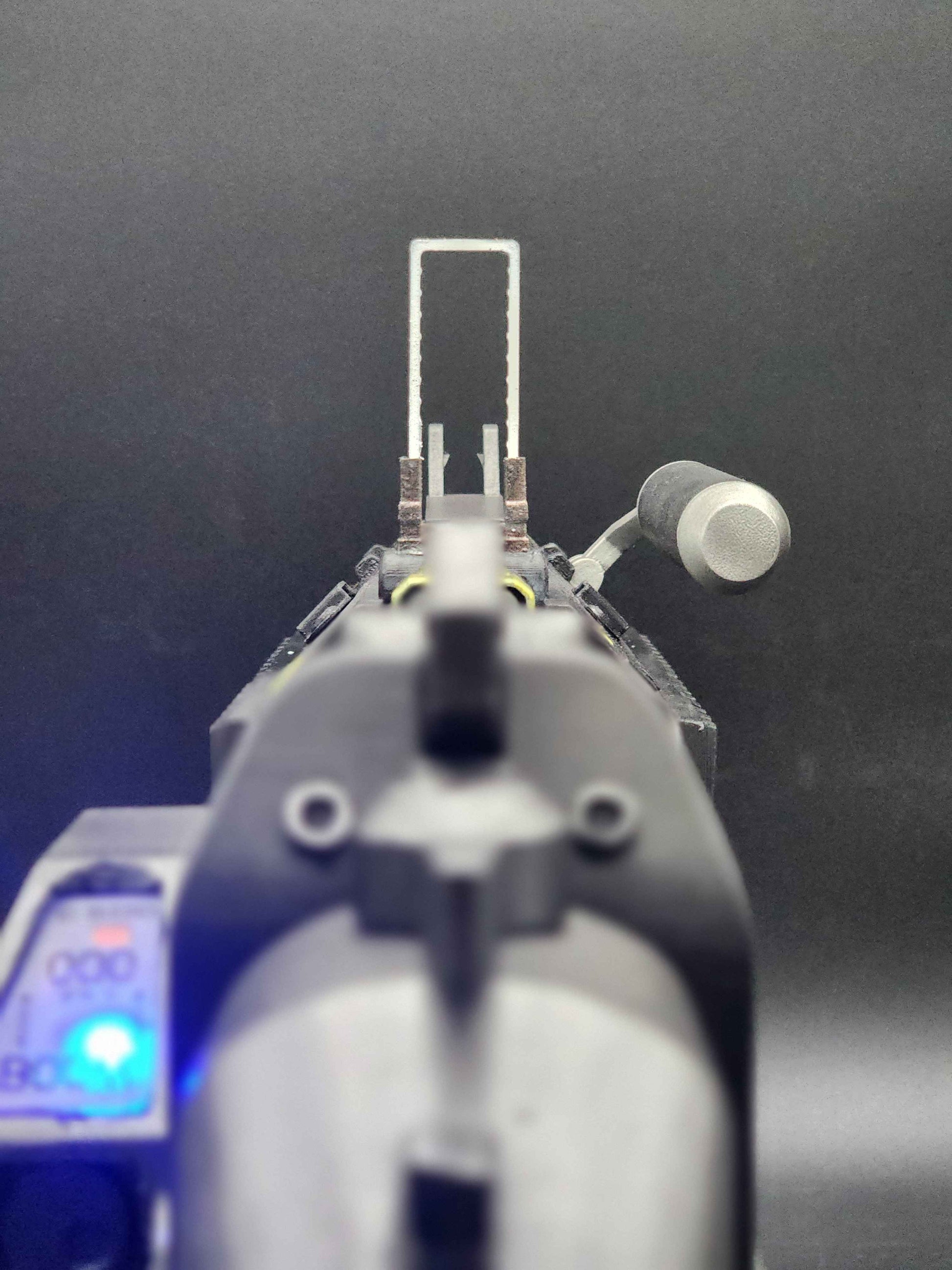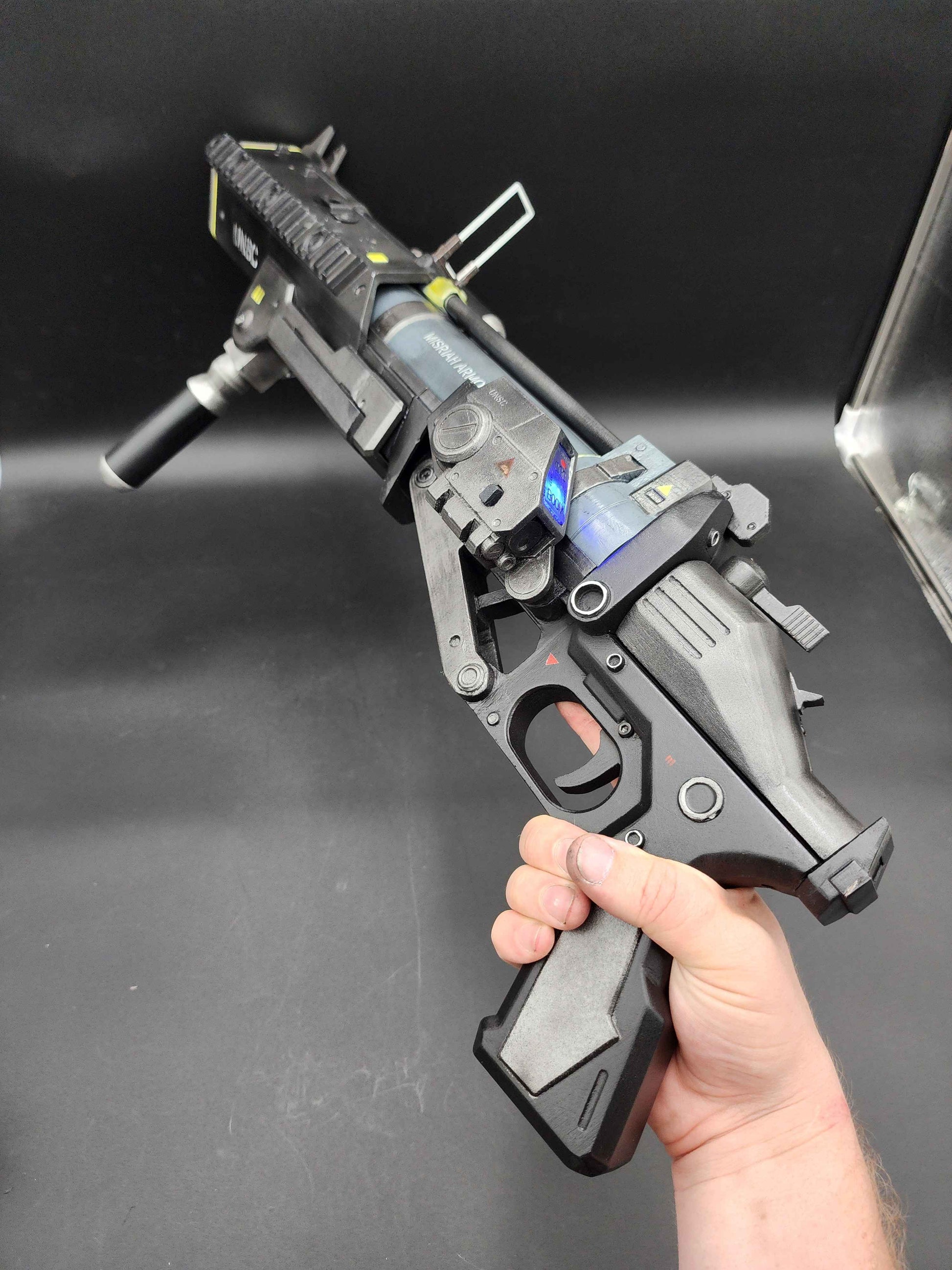 This was super fun to work on. With a functional break action and loadable grenade space, folding forward grip, working trigger, LED illuminated grenades, and my own custom work on the rangefinder module on the side to include an LED and custom text (shown design was customized for a friend), this is my most complex and proudest project at the time of my posting this.